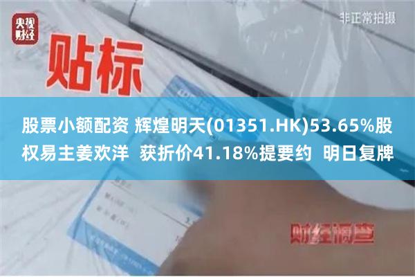 股票小额配资 辉煌明天(01351.HK)53.65%股权易主姜欢洋 获折价41.18%提要约 明日复牌